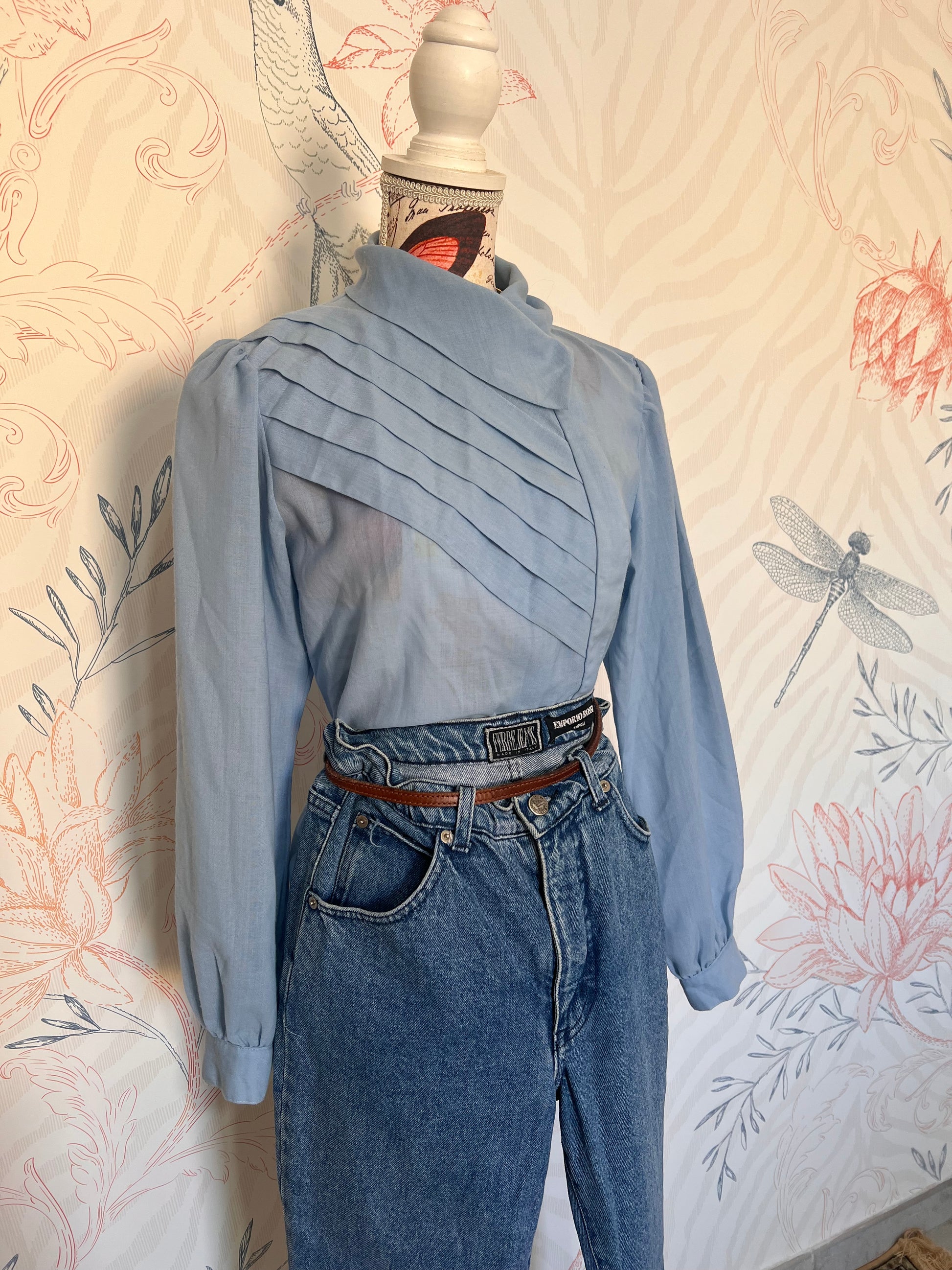 Camicia in cotone con pieghe e colletto semi laterale taglia 42